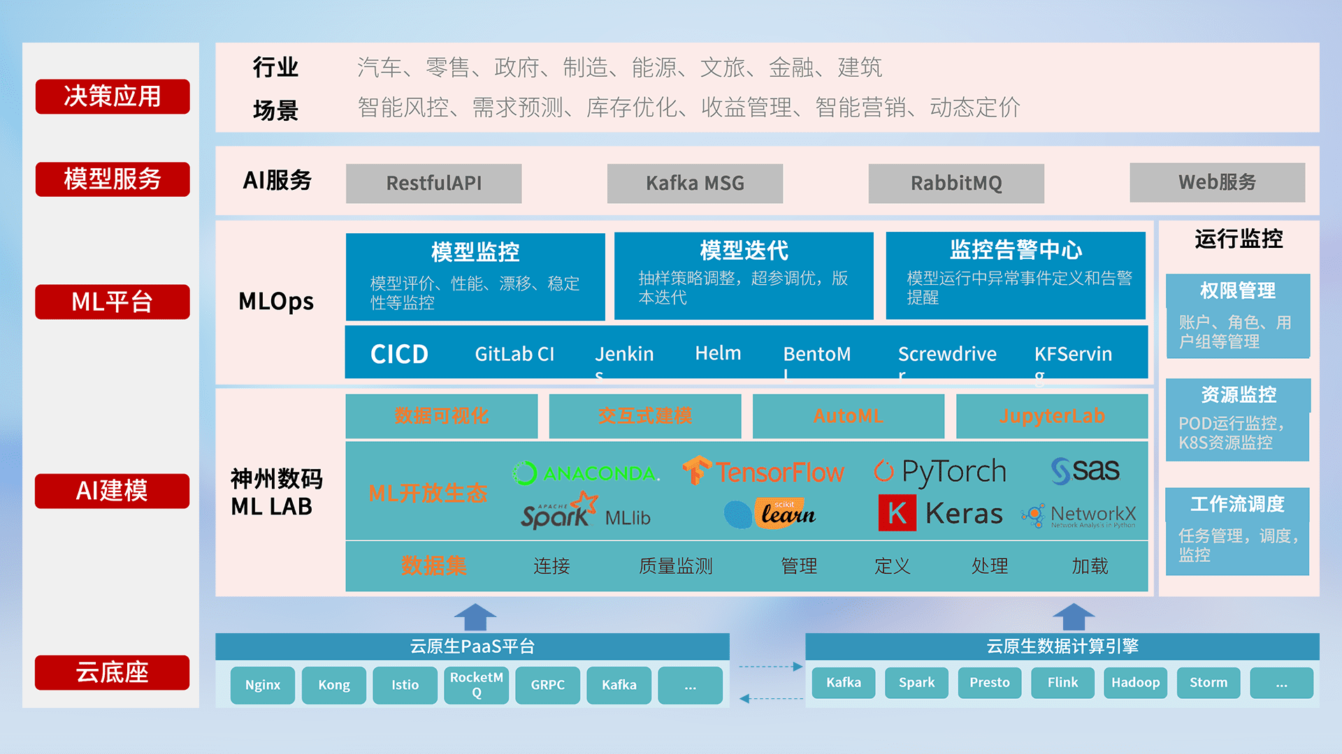 数据+模型双引擎驱动,,,面向智能服务场景,,,快速灵活利用AI技术,,支持业务决策,,助力企业智能化转型破局。。